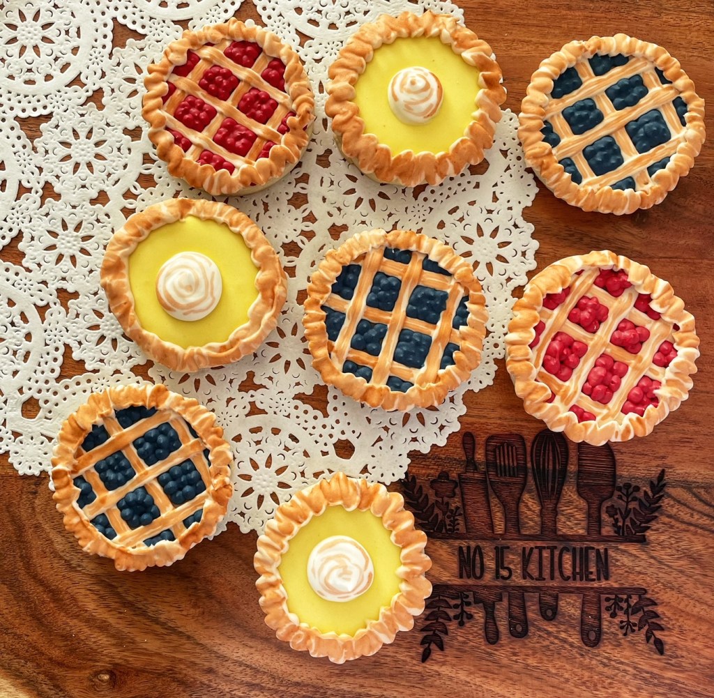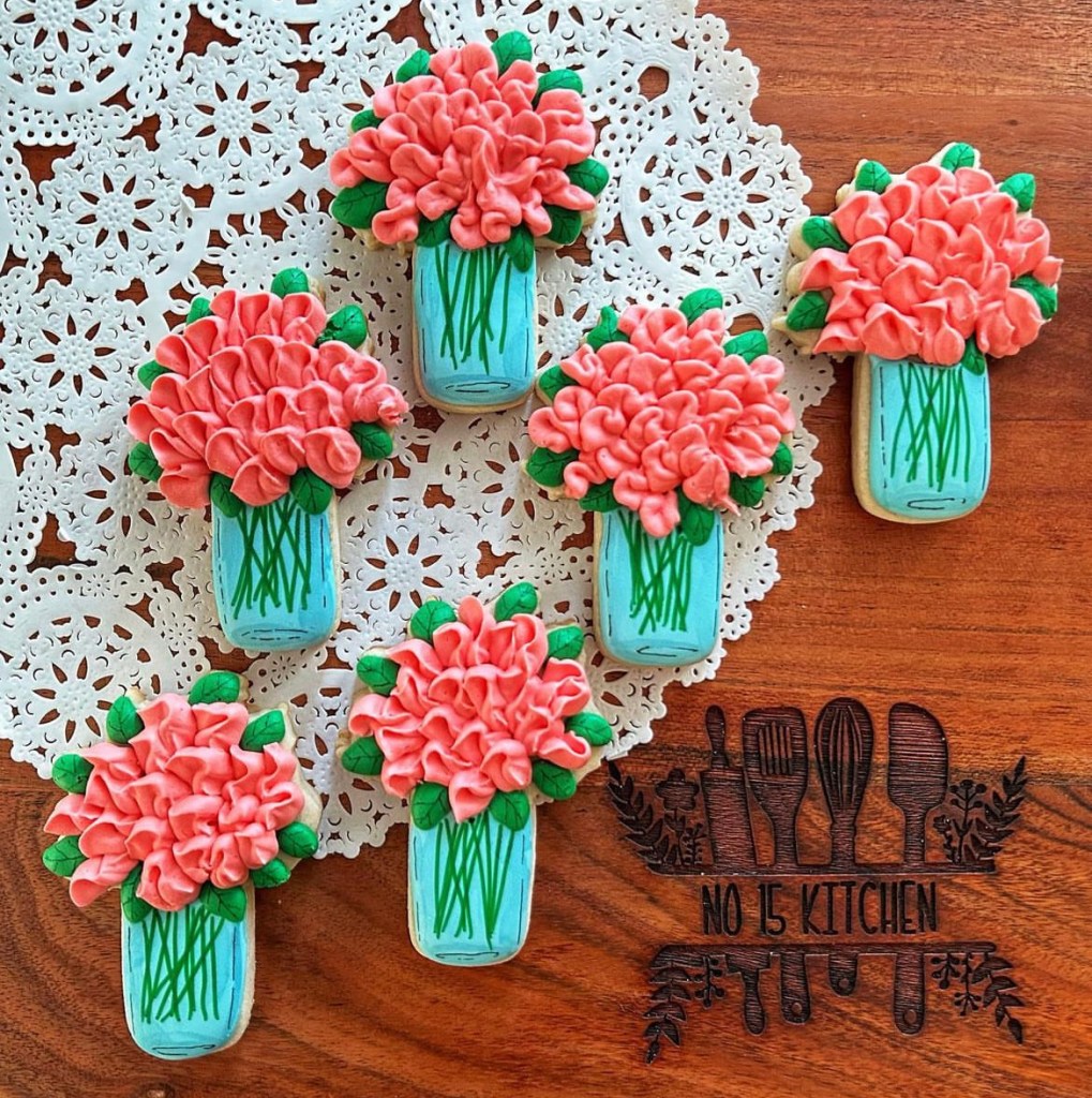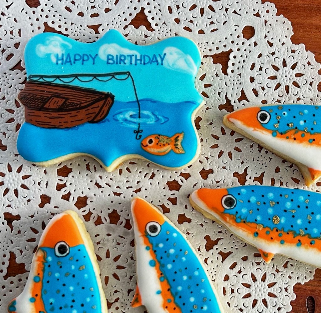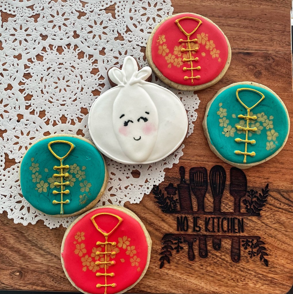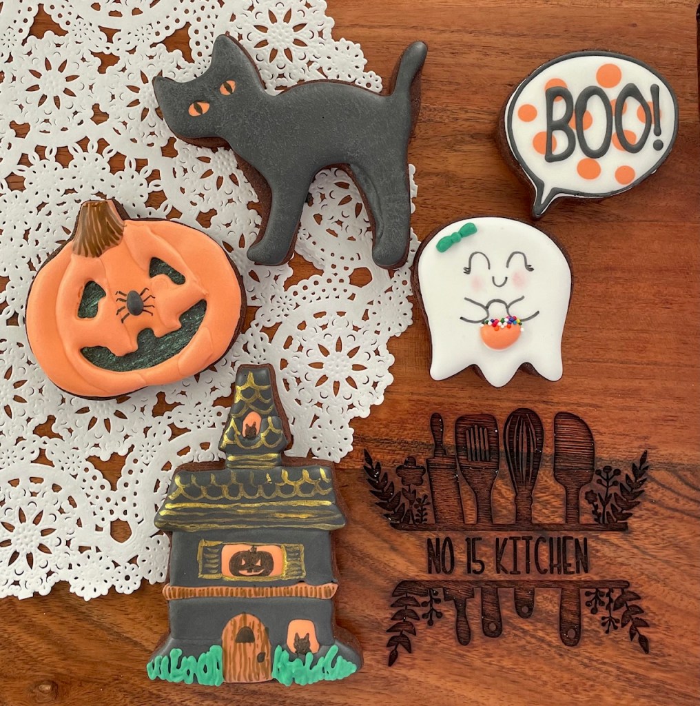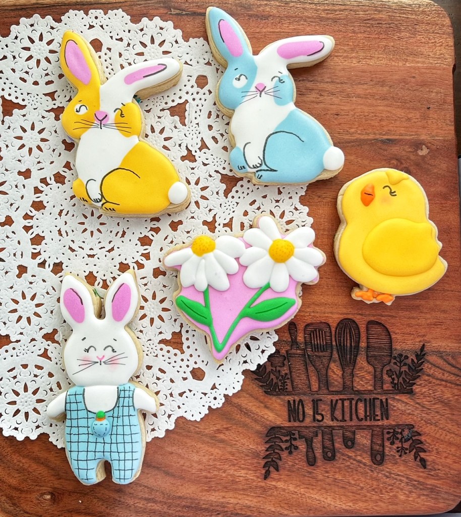Our sugar cookies are hand-made and decorated in a home kitchen. They are made of butter, sugar, flour, eggs, salt, meringue powder, vanilla, cocoa (sometimes) and other flavourings… but they could also come into contact with other ingredients you may be allergic to. Please don’t take a chance on our cookies if you have serious food allergies.