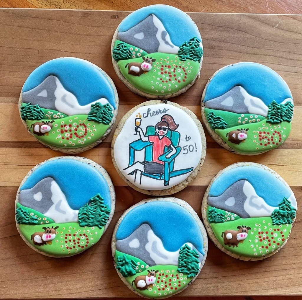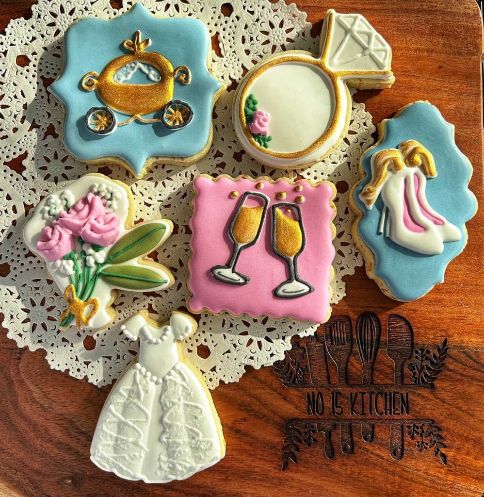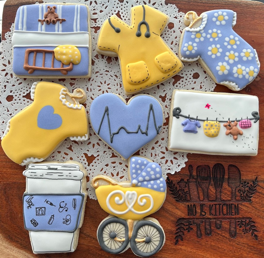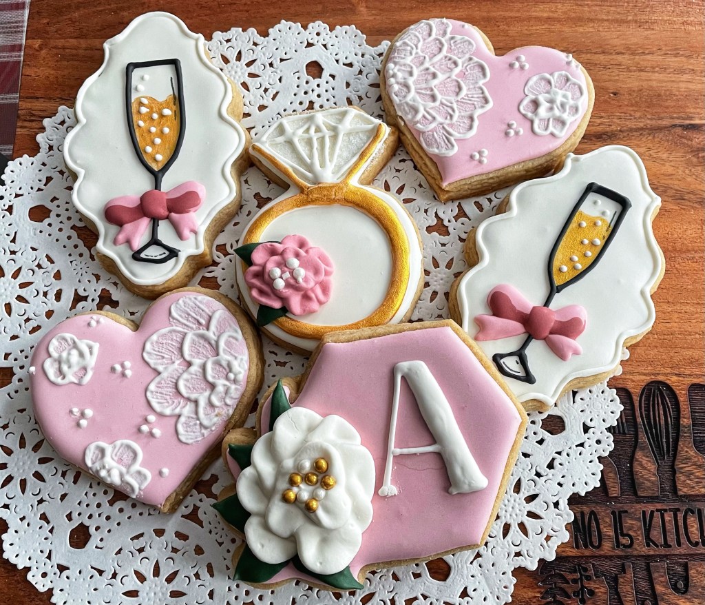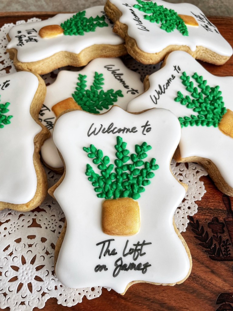 Our cookies range from approximately 2.5″ to 4″ in diameter and are individually bagged and heat-sealed. We work with you to design a set of cookies that matches the occasion they’ll be used to celebrate (even if that’s just Sunday afternoon with a cup of tea).